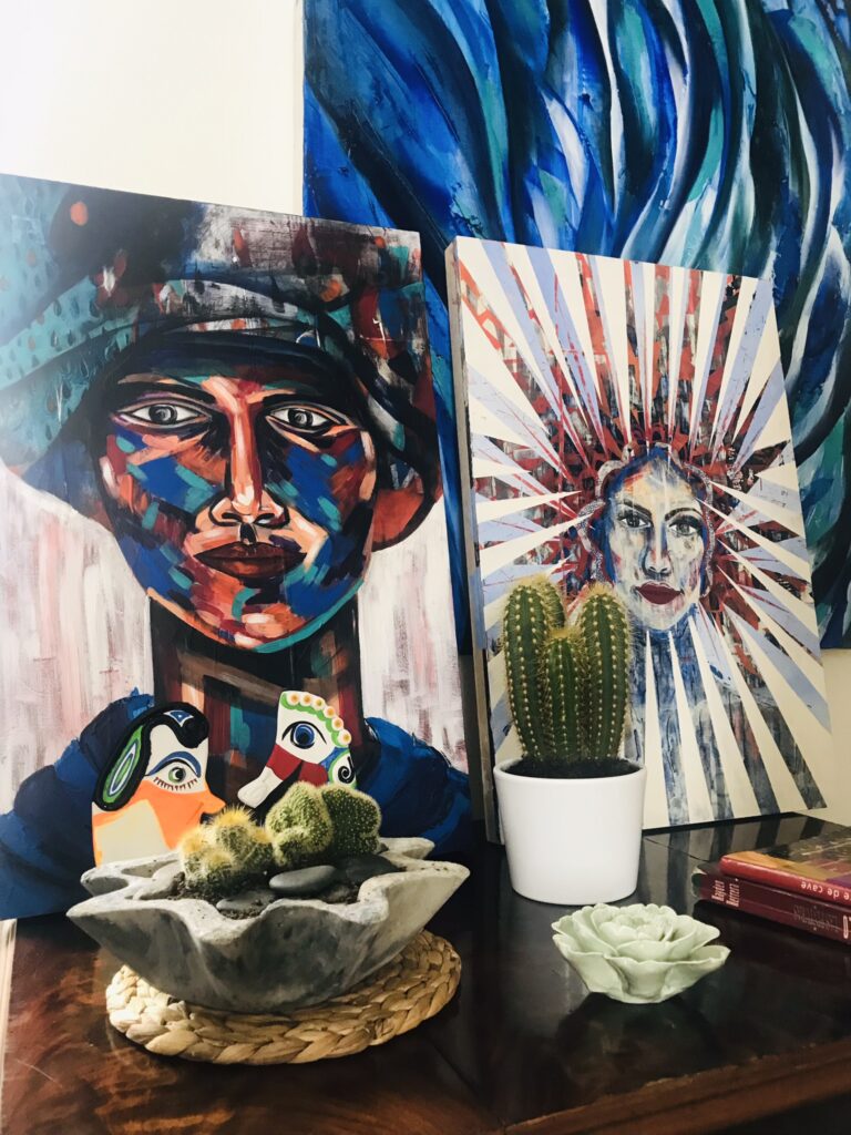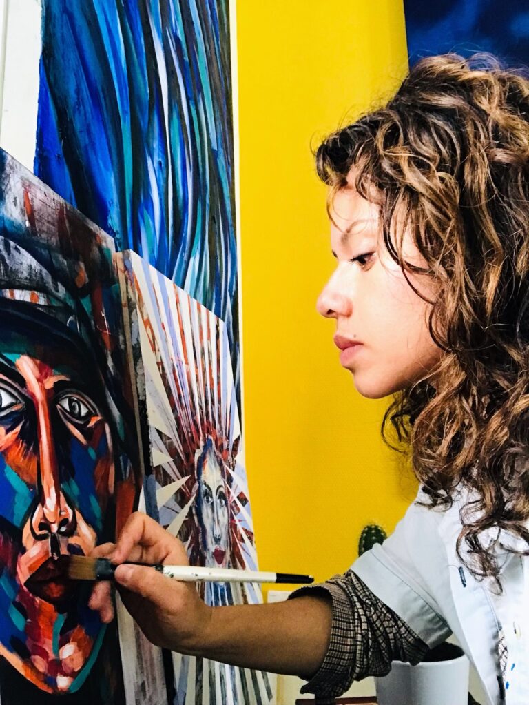 En 2012 j’ai été contraint d’abandonner la peinture et de céder la place à une étape très dure et difficile de ma vie, j’ai arrêté de peindre pour le public et sporadiquement, je peins juste pour moi. Maintenant, je suis de retour, renaît, réinventant la fille avec le désir de faire de l’art, la femme agitée pour s’exprimer, et bien sûr réinventant ma peinture, me montrant qu’elle a toujours été là, sauvant des moments, pour maintenant voir la lumière.